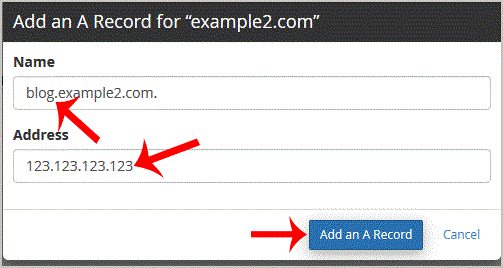 Name: Enter the name .add, for example, add "blog" and the cpanel will automatically add a domain name like blog.example.com.